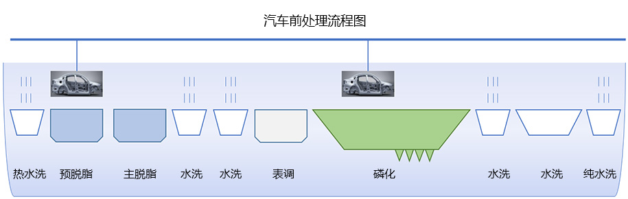 預(yù)脫脂 脫脂 水洗 表調(diào) 磷化 水洗 純水洗 水洗