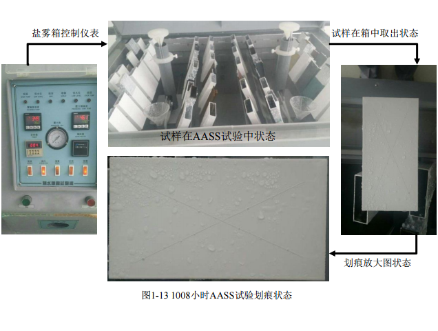 3、1008小時(shí)乙酸鹽霧試驗(yàn)(AASS試驗(yàn)):劃痕單測(cè)擴(kuò)散腐蝕<1mm(如圖1-13所示)